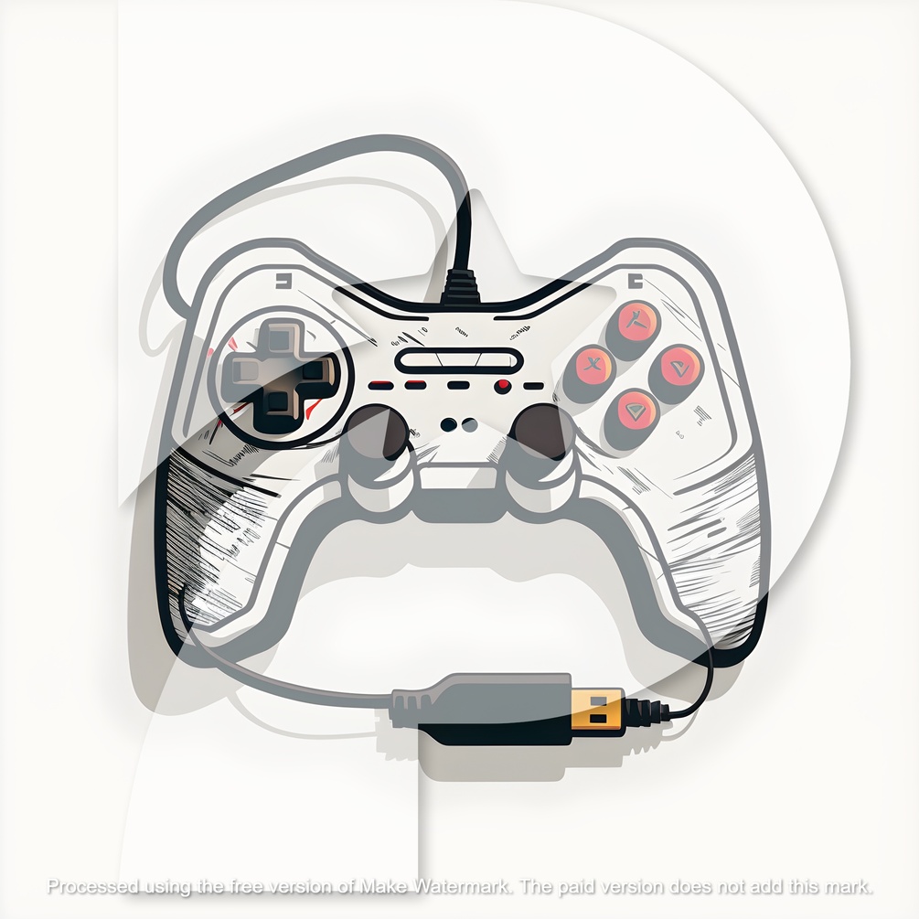2 illustrations of video gaming controllers black, white and watercolor designs with white and grey background game controller